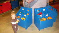 Mobius is our local children's museum. We were thrilled to get a membership from David's parents for Christmas. We have already taken them there are few times this year. They LOVE it! There are so many things to do there and so many learning opportunities. They have water play, little go carts on "streets" with traffic lights and stop signs, an arts and crafts area, a village store, grass hut, costumes, musical instruments. So much to do!